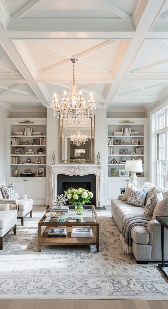 Coffered ceilings are a powerful way to elevate your living room design. Combined with elegant lighting and neutral decor, they create a space that feels luxurious and inviting.