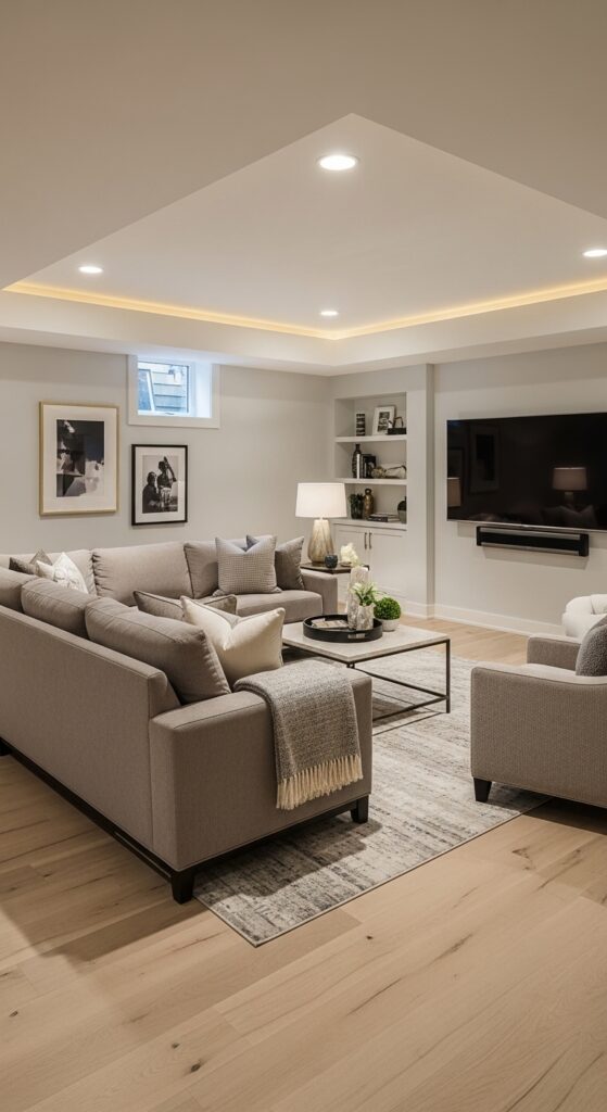 A finished basement with modern ceiling lighting turns a dark lower level into a welcoming and functional extension of your home. For US homeowners seeking both comfort and investment value, this upgrade is a smart design choice.